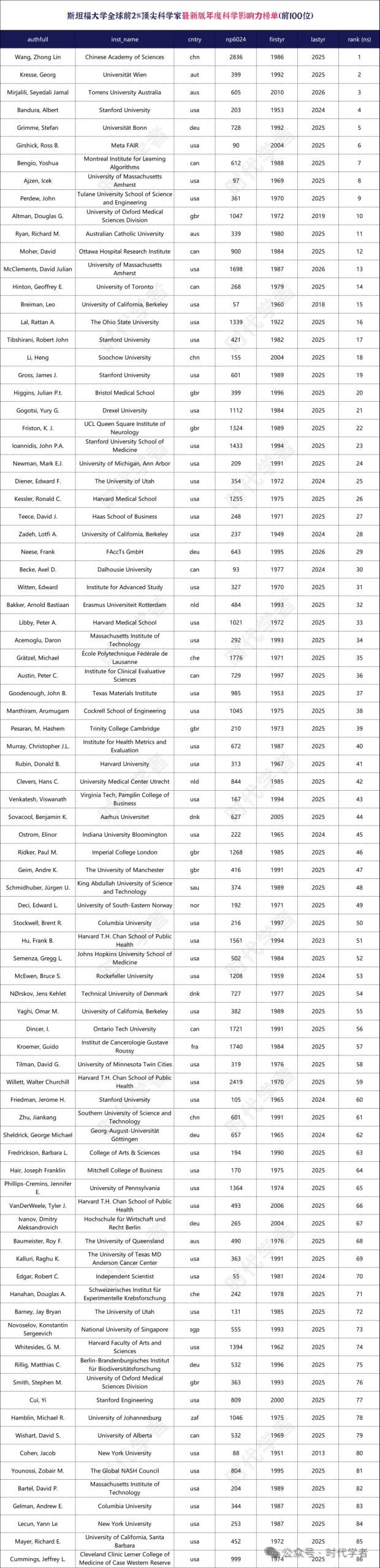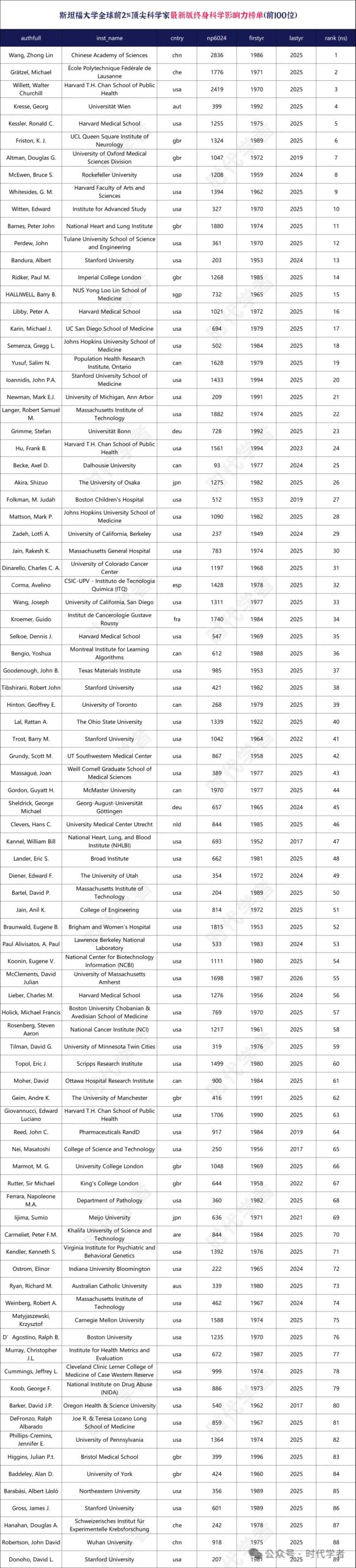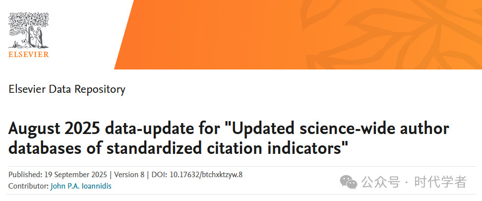 关注微信公众号:时代学者,后台回复“25前2%”,获取最新版全球前2%顶尖科学家完整榜单Excel