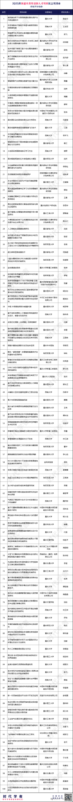附件:2025年新重庆青年创新人才项目拟立项清单