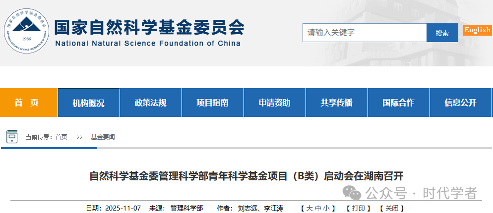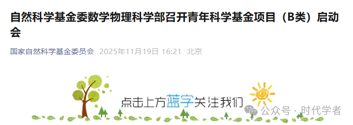 国自然多个学部已启动2025年青年科学基金(B类)项目