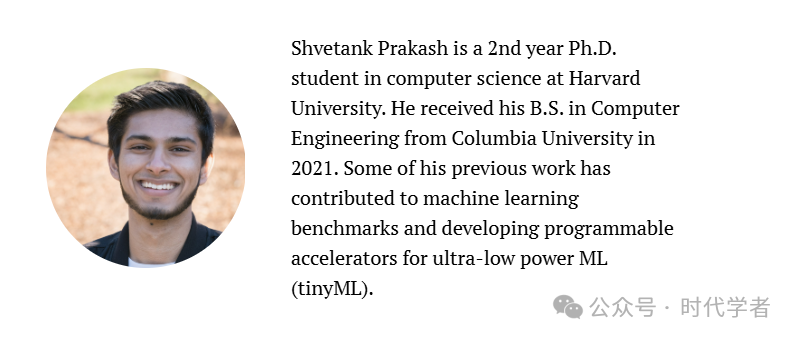 Shvetank Prakash是哈佛大学的博士生,隶属于边缘计算实验室(Edge Computing Lab)。他的研究专注于为AI智能体构建优化的基础设施,特别是针对资源受限的边缘设备。他通过利用新型算法、精选数据集和「智能体优先」的设计理念,推进硬件架构与系统设计,使AI能够更高效地部署在下一代计算平台上。