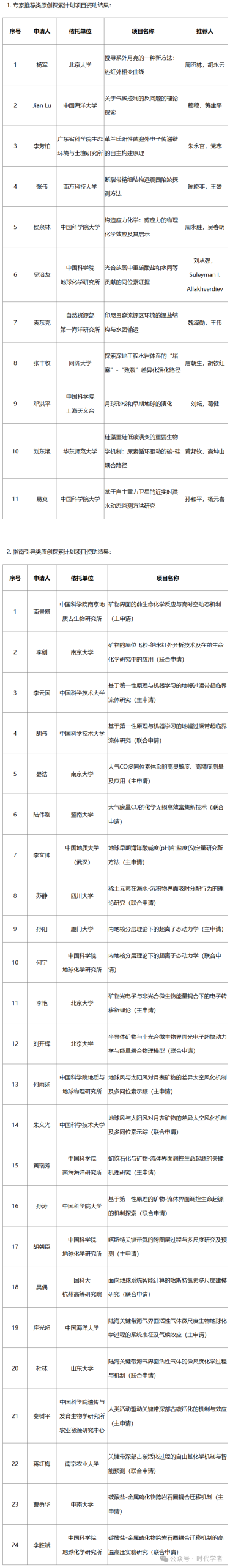 根据《国家自然科学基金原创探索计划项目实施方案(试行)》的有关规定,现将2025年度地球科学部原创探索计划项目相关信息予以公示: