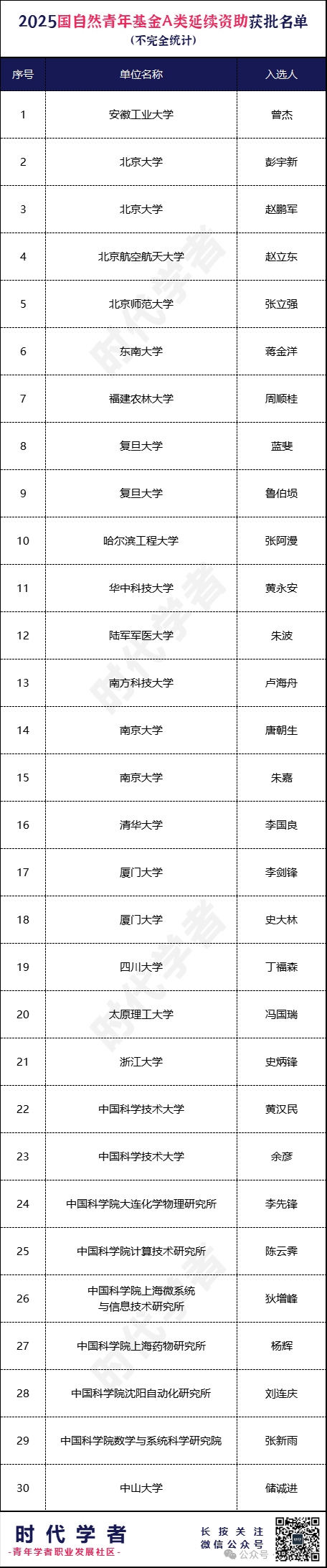 近期,各单位陆续公布了2025年度延续资助的获批信息,部分入选人信息整理如下(不完全统计):