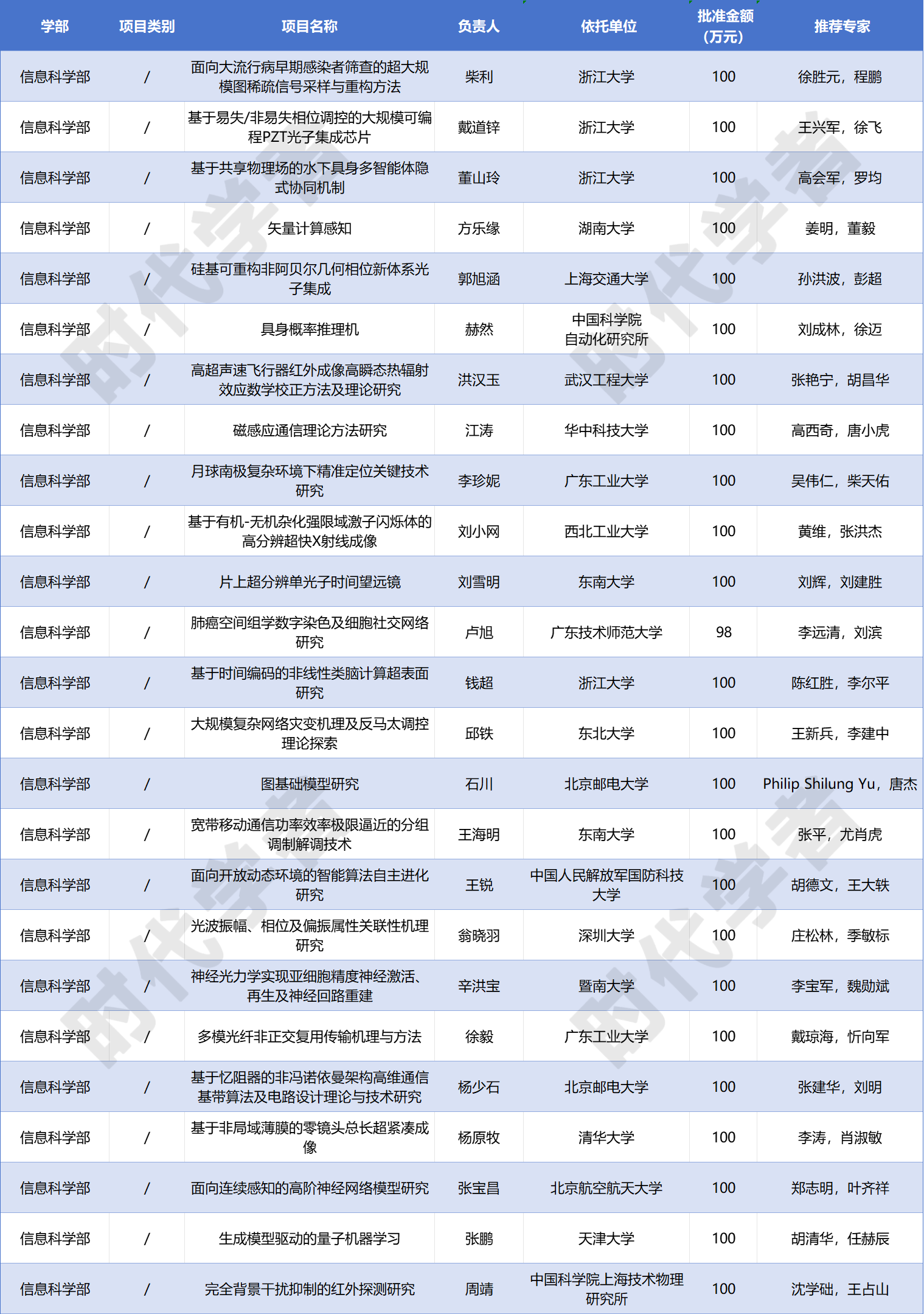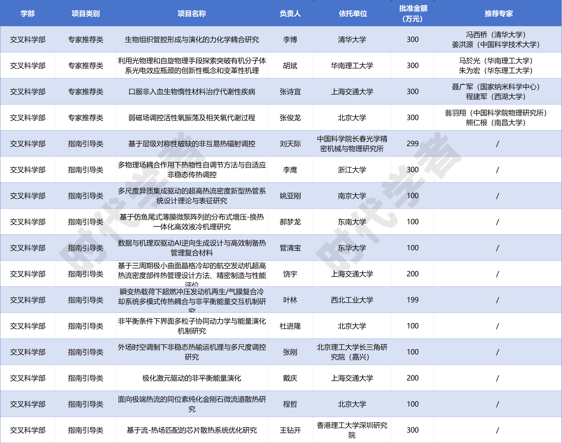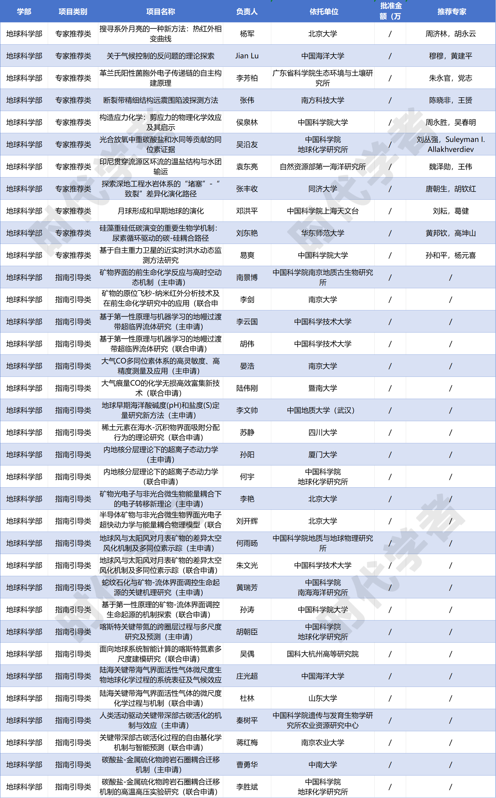 近日,国家基金委多个学部相继公布了2025年度原创探索计划项目资助情况,具体如下: