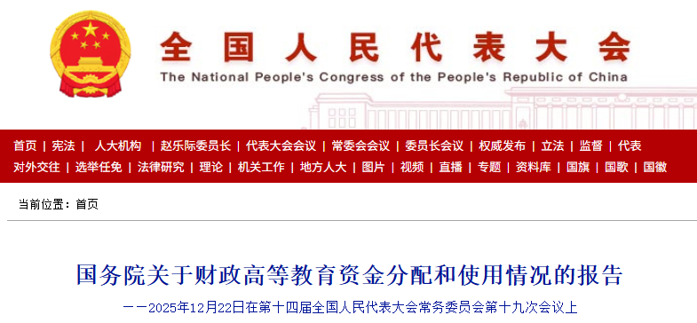受国务院委托,向全国人大常委会报告财政高等教育资金分配和使用情况,请审议。