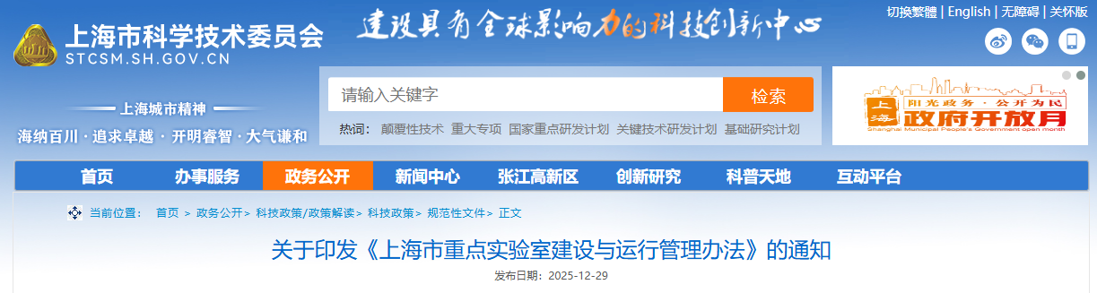 12月29日,上海市科学技术委员会公布了最新修订的《上海市重点实验室建设与运行管理办法》。其中特别提到:重点实验室应注重学术梯队和优秀中青年队伍建设,统筹各类资源设立专门经费支持青年科技人员的科研启动,鼓励青年科技人才挑大梁、当主角,实验室主任、副主任中应配备45周岁以下科研技术骨干。