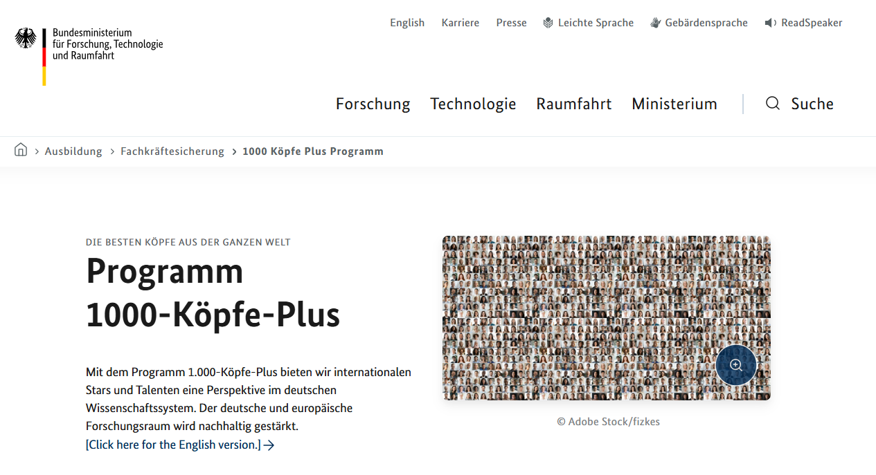 “千人+计划”于2025年7月推出,依托洪堡基金会和德国研究协会(DFG)以及德国学术交流中心(DAAD)等德国学术科研机构来实施,旨在吸引高水平国际科研人才来德科研,助力德国高科技议程实施,并进一步加强德国作为有吸引力的研究中心的地位。