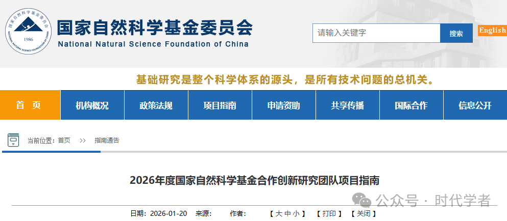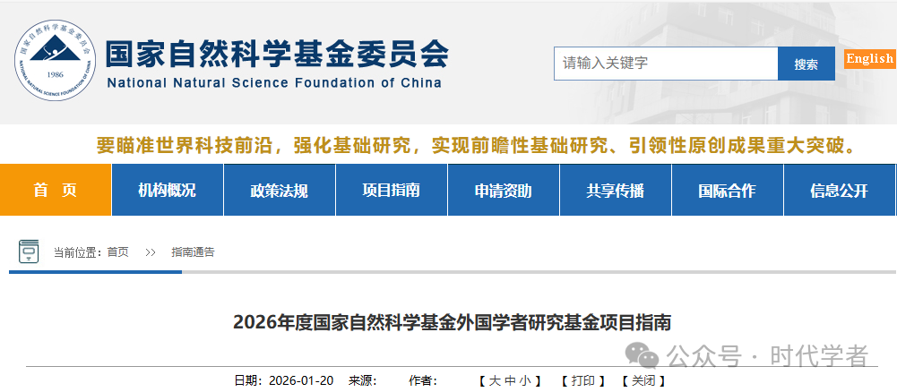 1月20日,国家自然科学基金委发布《2026年度国家自然科学基金外国学者研究基金项目指南》和《2026年度国家自然科学基金合作创新研究团队项目指南》,具体内容如下: