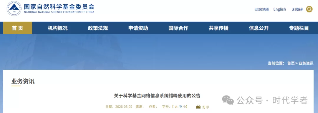 国自然基金委公告:申报高峰时段已实施分段限流措施
