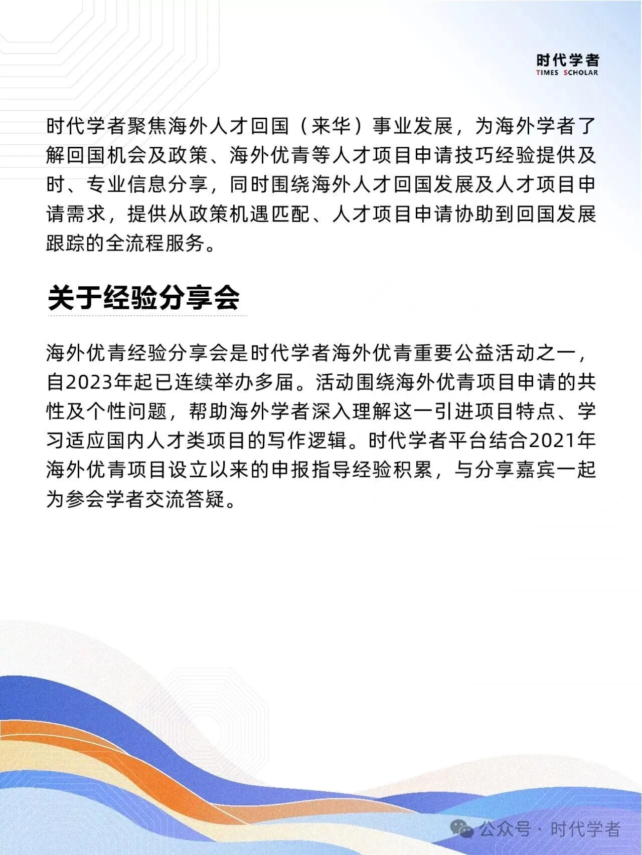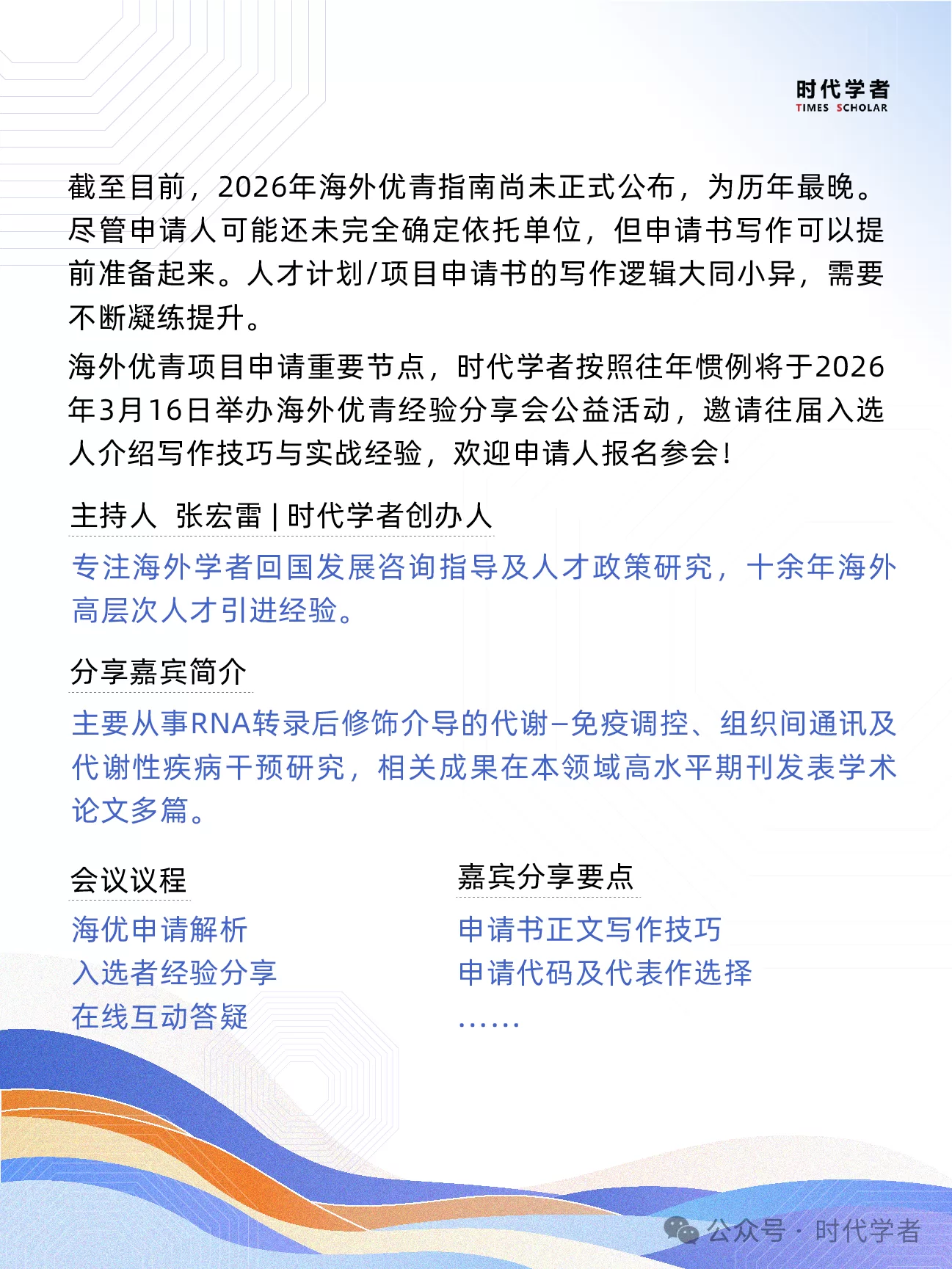 更多经验分享活动、政策解析及申请攻略请关注公众号:时代学者
