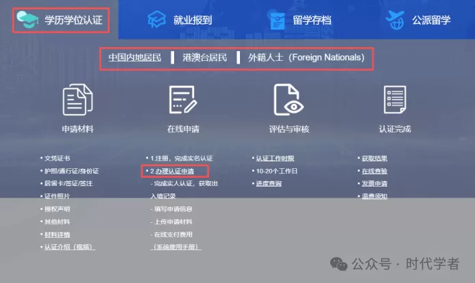 前面提到学历学位认证海外人才可以在线自行申请,了解具体流程可以联系工作人员(微信号:shidaixuezhe6)获取《国(境)外学历学位认证系统操作手册》。