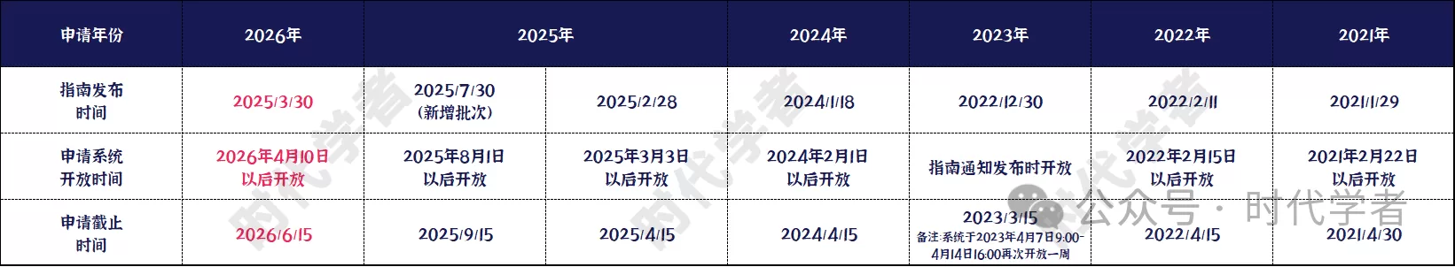 2024年及以前指南基本都在1月份前后发布,4月份申请截止(含截止再次开放年份),2025年在常规批次基础上,基于当时形势增加了新增批次。2026年起项目截止推迟到6月份,有望形成上半年组织申报,下半年组织评审的新节奏。而基于海外优青项目周期判断,今年大概率不再有新增批次。